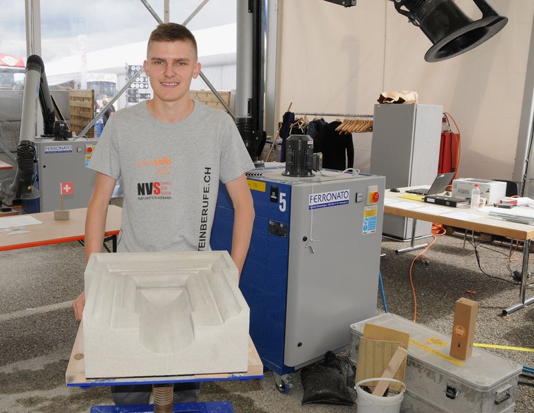 Felix Kuster hat sich während vier Tagen mit vier Kollegen ( Aldo Matteo Melcarne, Bruno Kuster, Roman Weber und Tim Wieland) an den SwissSkills 2022 in Bern gemessen und nach einem harten, fairen und engen Wettkampf durchgesetzt. Alle fünf Kandidaten haben hervorragende Arbeiten gezeigt – der Wettkampf der Steinmetze fand auf höchstem Niveau statt.