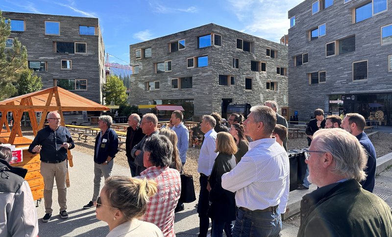 Christoph Schmidt, Leitung Hotels & Gastronomie und Mitglied des Managements der Weissen Arena Gruppe, führte die Steinigen bei schönstem Herbstwetter auf einem Spaziergang durch das Rocksresort – wo nicht nur die öffentlich zugänglichen Bereiche begangen, sondern auch Appartements besichtigt wurden.
